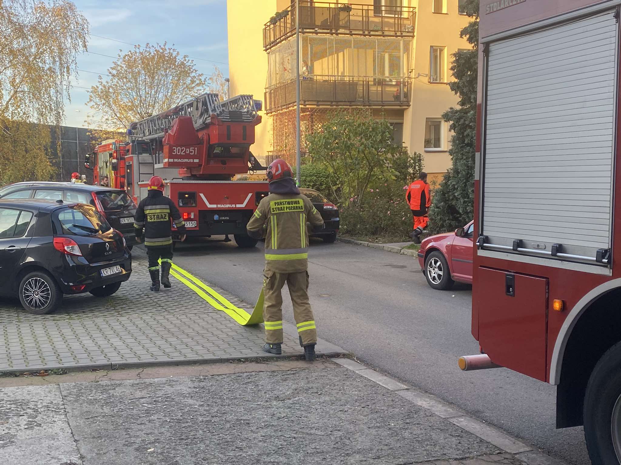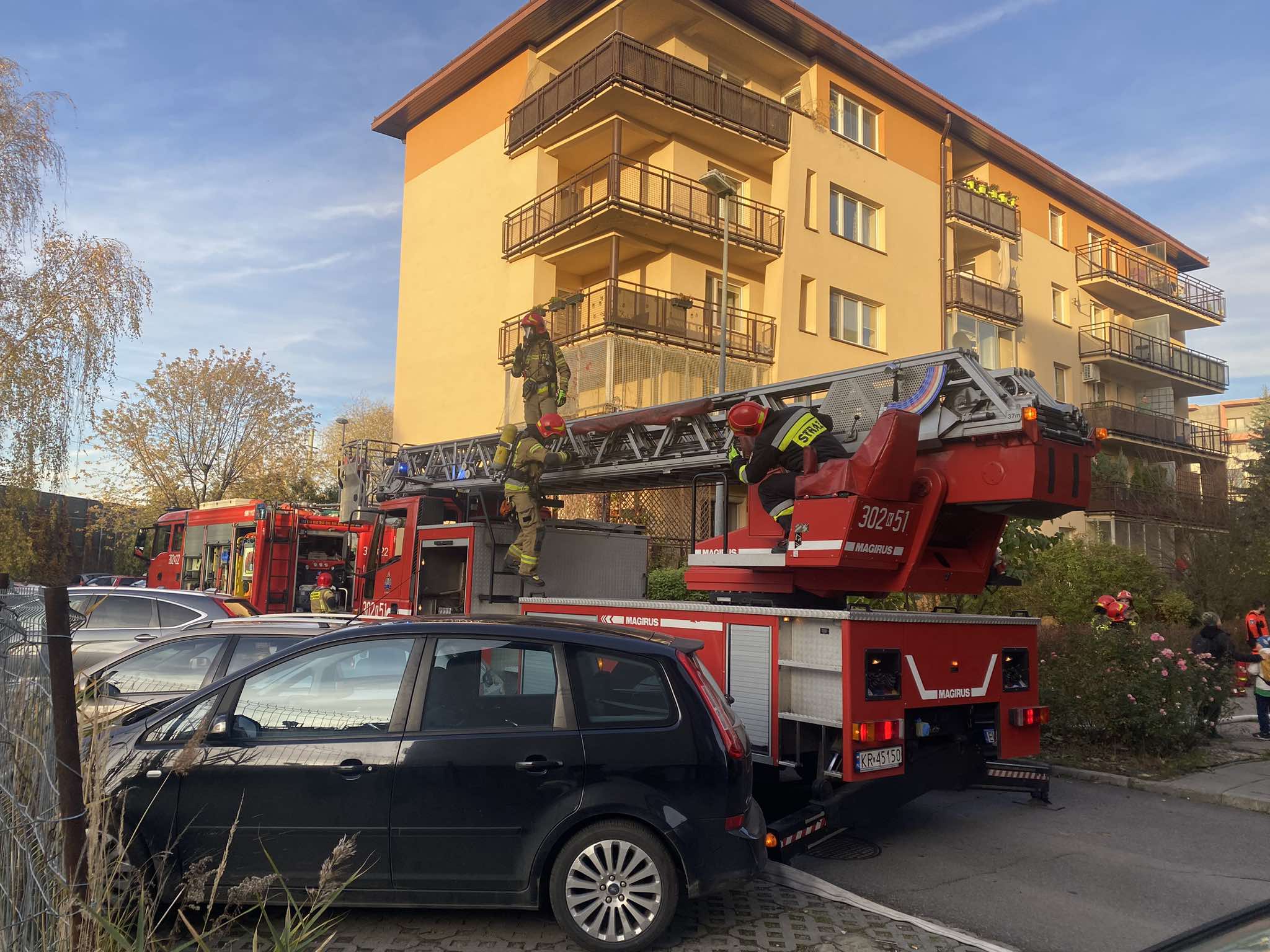 Na ulicy Jana Guntenberga w Krakowie zapaliło się mieszkanie w bloku. Na miejsce wyjechały jednostki Państwowej Straży Pożarnej.