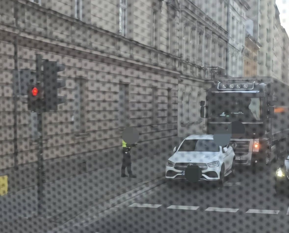 Patrol policji dotarł na miejsce. Służby zabezpieczają miejsce zdarzenia i kierują ruch.