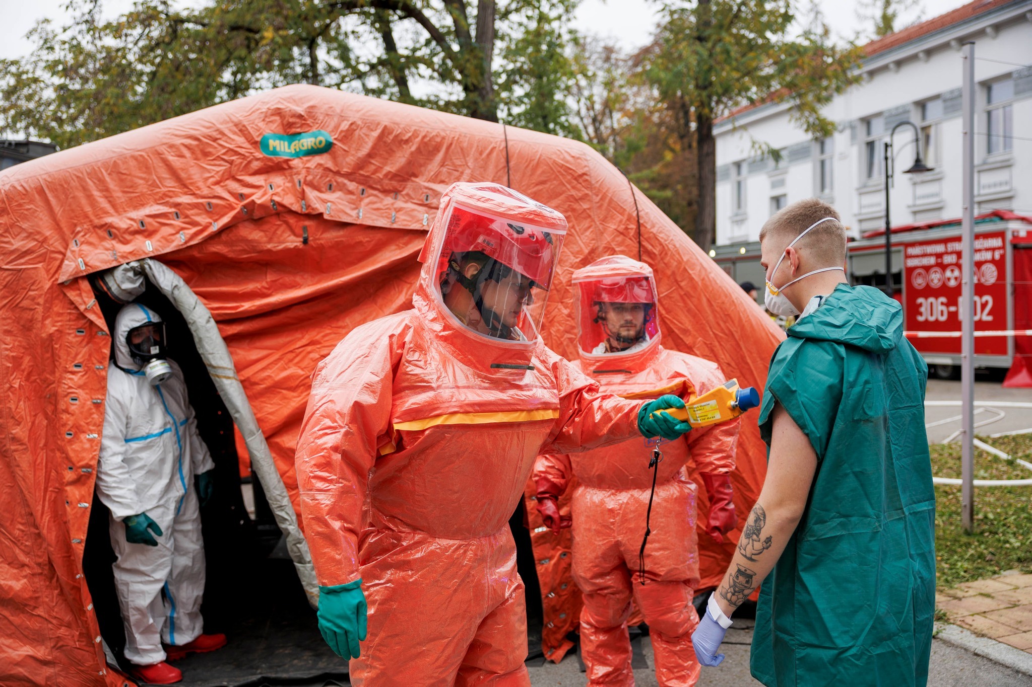 Straż Pożarna, Policja, WSSE i szpital wojskowy ćwiczyły ekstremalny wariant – nagły wyciek promieniowania z uszkodzonego defektoskopu z selenem 75.