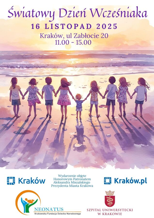 Światowy Dzień Wcześniaka to więc ważny dzień dla lekarzy neonatologów, pielęgniarek neonatologicznych, ale przede wszystkich dla dzieci urodzonych przed planowanym terminem i ich rodziców. W tym dniu na całym świecie organizowane są akcje mające na cele zwiększyć świadomość społeczną na ten temat. Kraków również włączył się do tej inicjatywy – 17 listopada na fioletowo zostaną podświetlone charakterystyczne punkty miasta: kładka o. Bernatka, TAURON Arena Kraków oraz wieża telewizyjna na Krzemionkach.