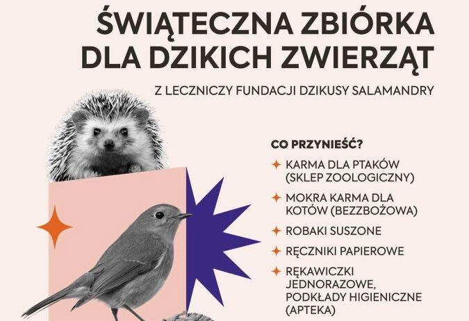 Fundacja Dzikusy Salamandry codziennie ratuje dzikie zwierzęta, umożliwiając im leczenie, rehabilitację i readaptację do powrotu na wolność. Dlatego też szczególnie w okresie zimowym, kiedy podopieczni trafiają do niej osłabieni, ranni lub osieroceni, apeluje ona o wsparcie ze strony mieszkańców. W tym celu w Krakowie rozpoczęła się tegoroczna edycja świątecznej zbiórki dla dzikich zwierząt, organizowanej z myślą o jeżach, ptakach, wiewiórkach, nietoperzach, zającach, lisach i innych potrzebujących gatunkach.