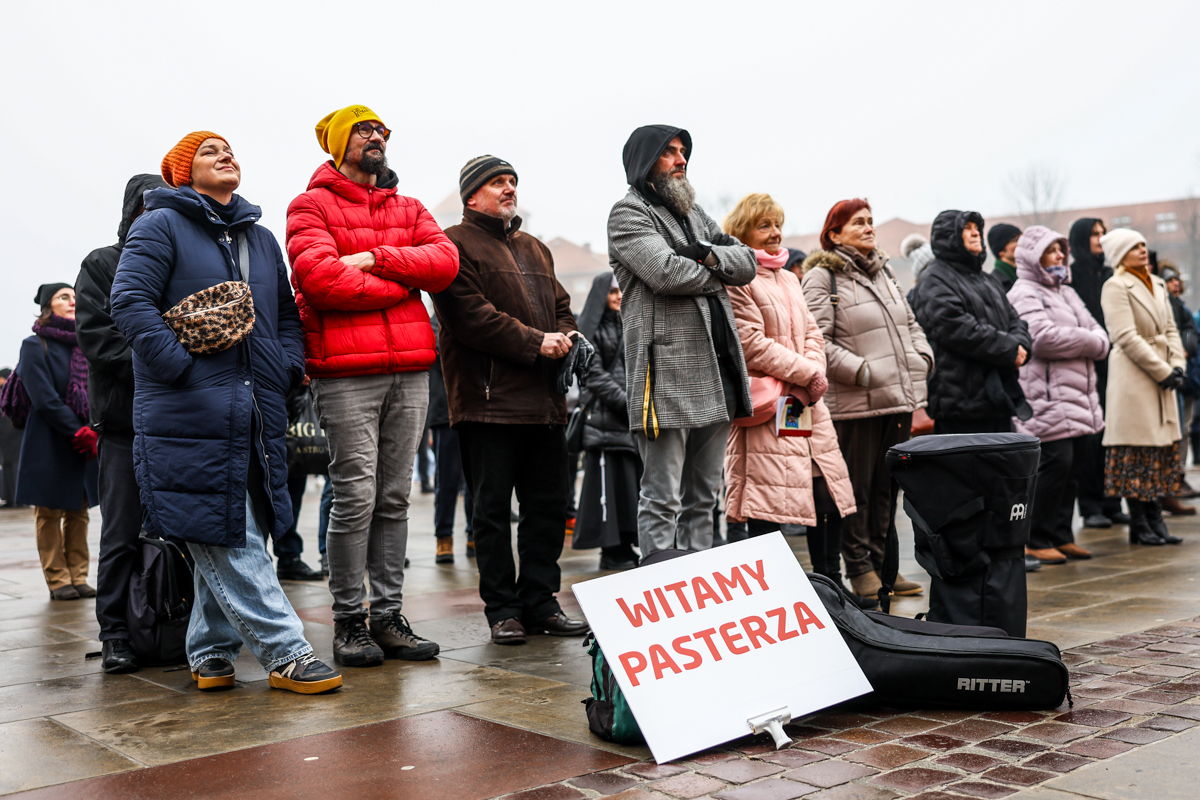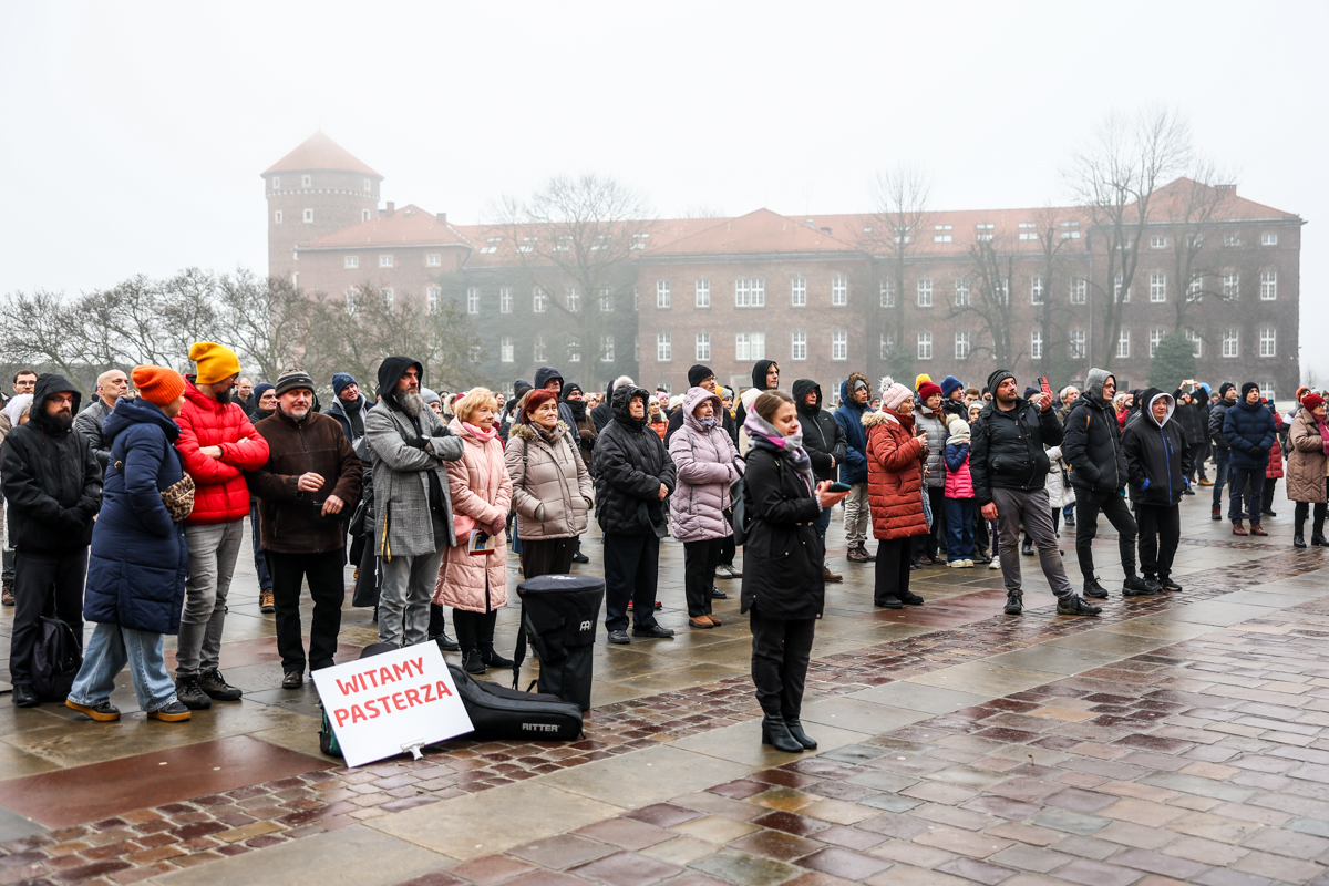 Sobotnia uroczystość na Wawelu zgromadziła wielu przedstawicieli władz państwowych i duchownych. Przed katedrą czekali na niego wierni z transparentem „Witamy naszego pasterza”.