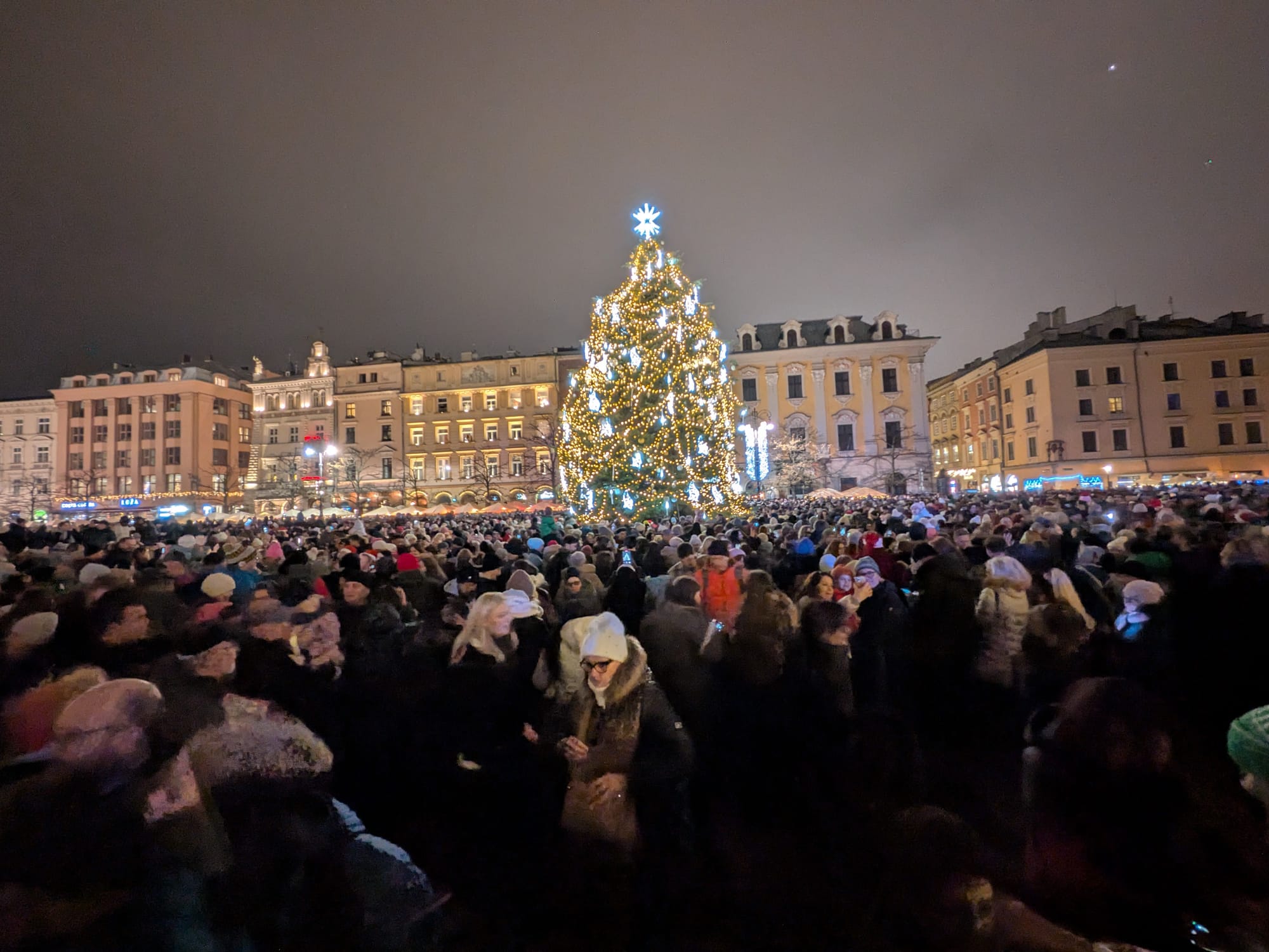 Kilka tysięcy krakowian i turystów zebrało się w centrum miasta, żeby wspólnie rozpocząć odliczanie do świąt. Choinka stanęła w samym sercu Rynku/