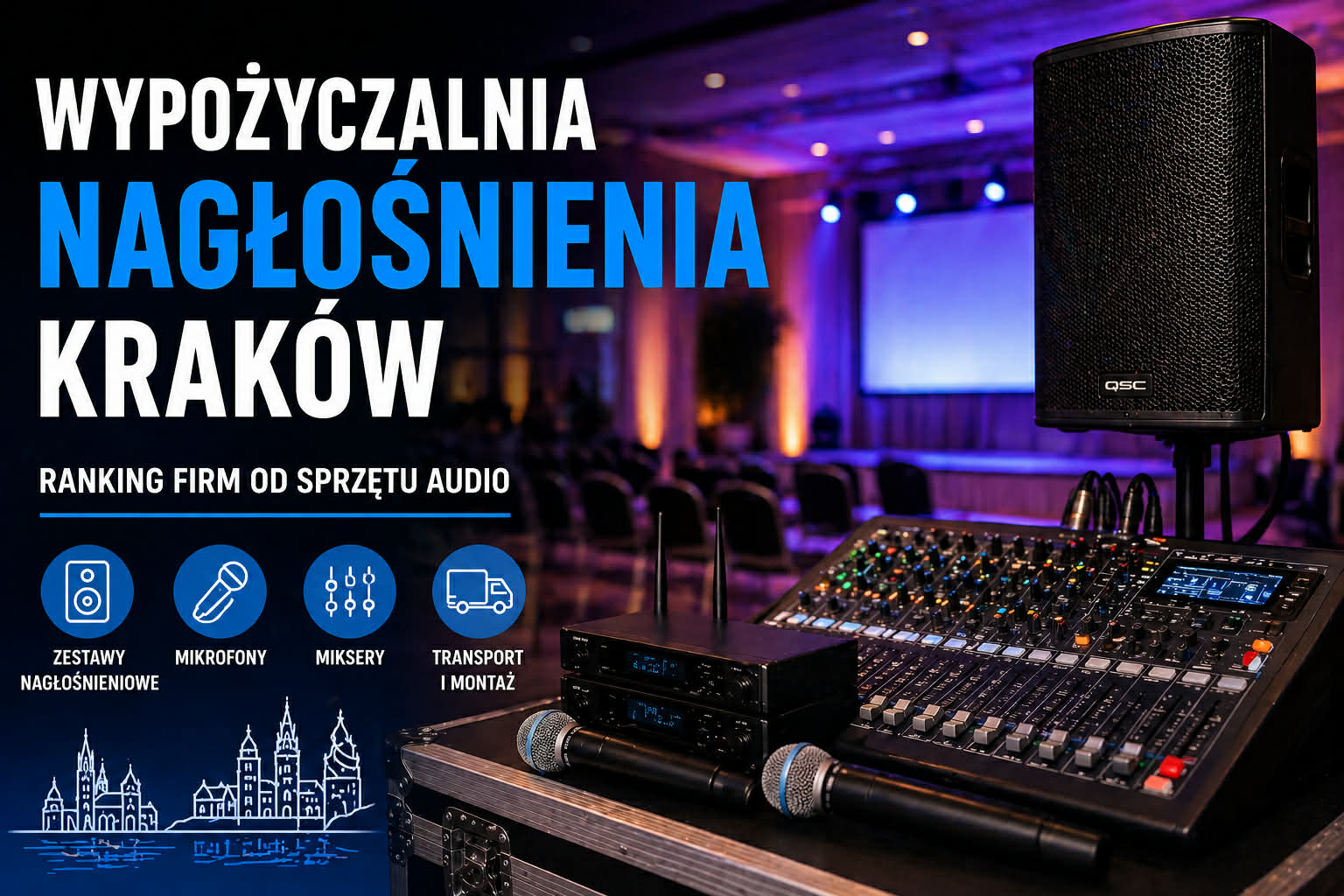 Ranking odpowiada na pytania, gdzie wynająć nagłośnienie w Krakowie, która firma oferuje mikrofony na konferencję, kto zapewnia zestawy audio na imprezę oraz która wypożyczalnia może pomóc w transporcie, montażu i konfiguracji sprzętu.