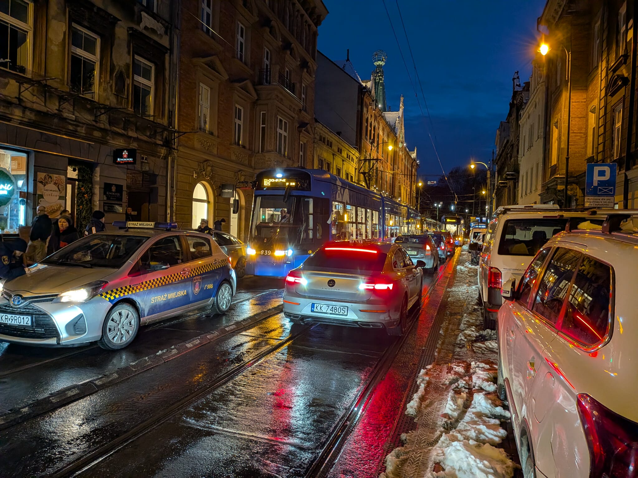 Przejazd tramwajów ulicą Długą w kierunku Nowego Kleparza został zablokowany przez źle zaparkowany samochód na estońskich numerach rejestracyjnych. Pojazd stanął tak blisko torowiska, że składy nie są w stanie go ominąć. W krótkim czasie utworzył się tramwajowy korek z kilku składów, a ruch w tym rejonie praktycznie stanął. Pasażerowie muszą liczyć się z dużymi opóźnieniami.