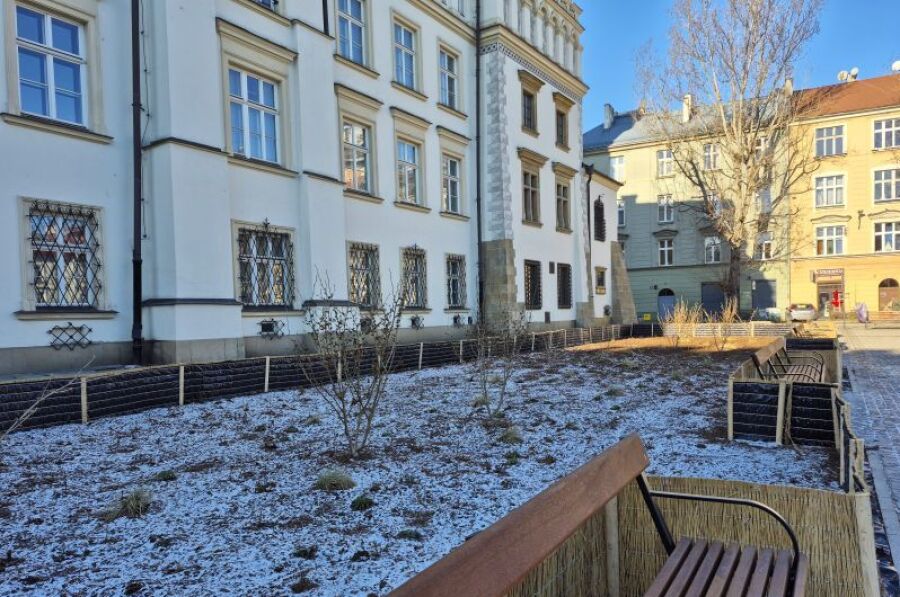 Największa przemiana objęła teren tuż przed Muzeum Etnograficznym. Tam, gdzie dotąd ciągnęła się szara nawierzchnia, teraz rośnie nowa rabata. Mieszkańcy i turyści mogą usiąść na świeżo ustawionych ławkach.