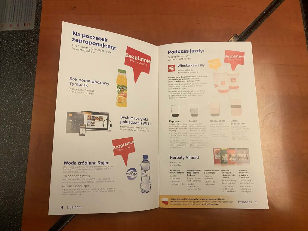 Dodatkowo była darmowa woda na start i darmowa kawa w trakcie przejazdu, a w wagonie działał panel multimedialny (filmy, gry), który może być zbawieniem dla rodziców podróżujących z dziećmi.