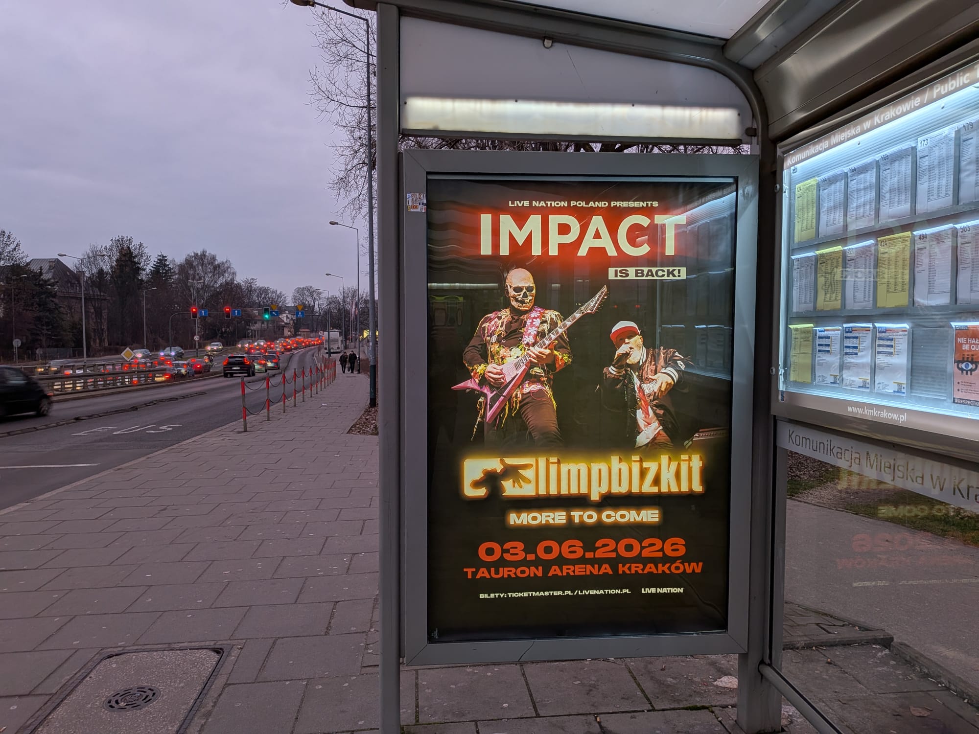 W Krakowie pojawiły się plakaty reklamowe koncertu Limp Bizkit. Zespół ma wystąpić 3 czerwca 2026 roku w Tauron Arenie podczas Impact Festival. Wygląda na to, że Live Nation, który organizuje imprezę, najwyraźniej nie zamierza rezygnować z wydarzenia.