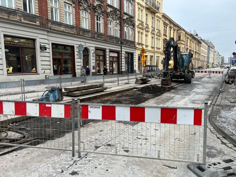 Ekipy naprawiają torowisko w trzech miejscach. Pierwsza lokalizacja to wjazd od ulicy Dietla. Druga obejmuje rejon skrzyżowania z Berka Joselewicza. Trzeci punkt to skrzyżowanie z Miodową. Wszystkie te fragmenty wymagały natychmiastowej interwencji ze względów bezpieczeństwa.