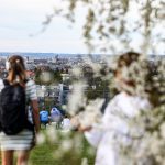 Kopiec Krakusa to jedno z tych miejsc w mieście, które wiosną przyciąga szczególnie wielu spacerowiczów. Kwitnąca śliwa sprawia, że widok na Kraków wygląda jak z pocztówki. Najlepiej przyjść tu o zachodzie słońca – wtedy białe kwiaty wyglądają najefektowniej na tle miejskiej panoramy.