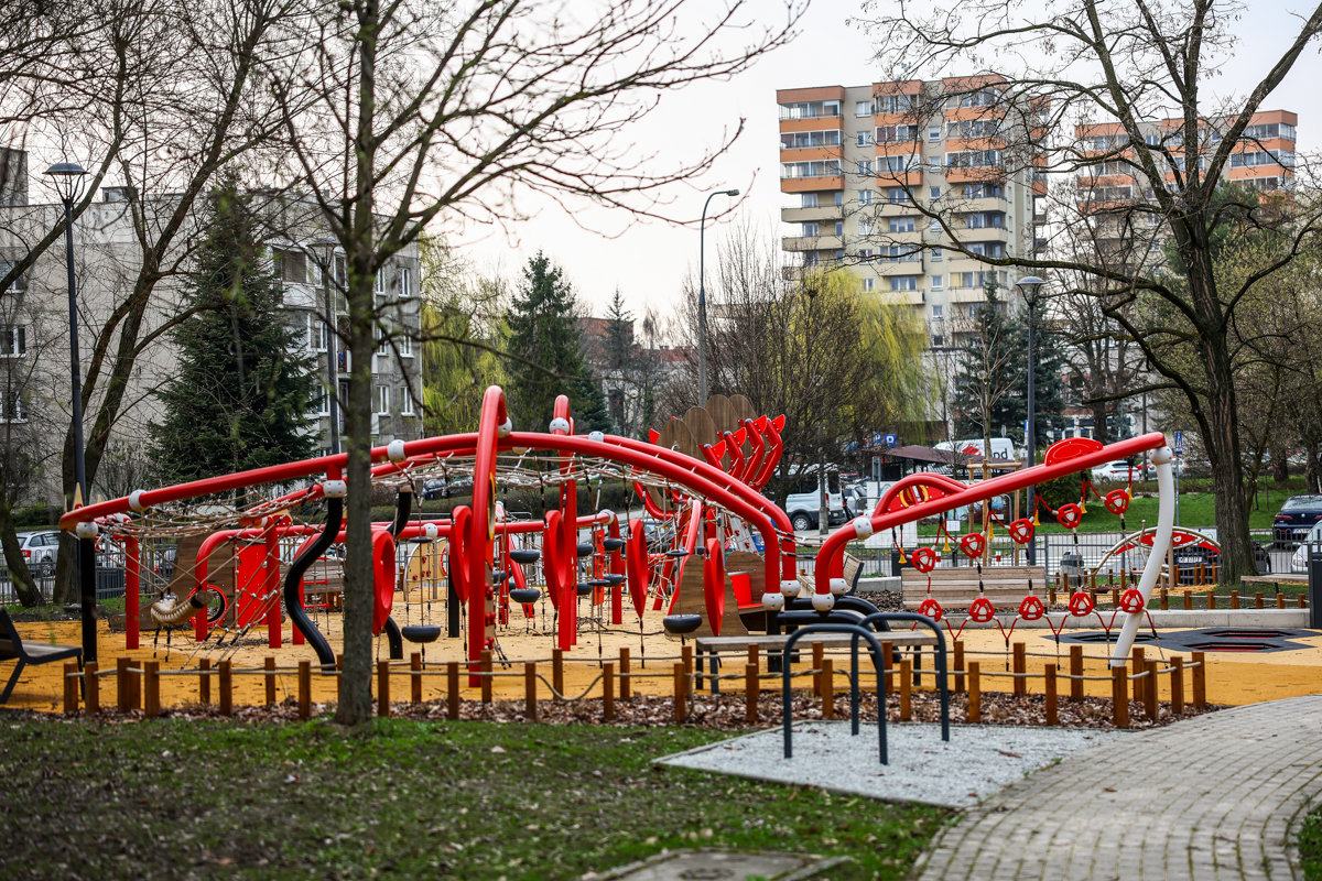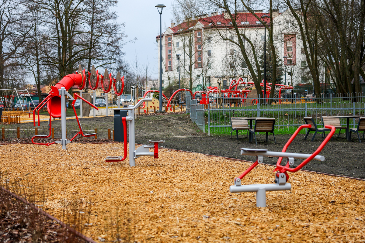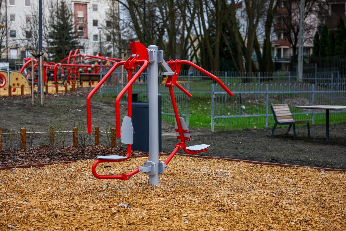 Projektanci zadbali o to, żeby skwer służył różnym grupom użytkowników. Dzieci znajdą tu huśtawki, karuzele i piaskownicę. Dorośli skorzystają z urządzeń do ćwiczeń.
