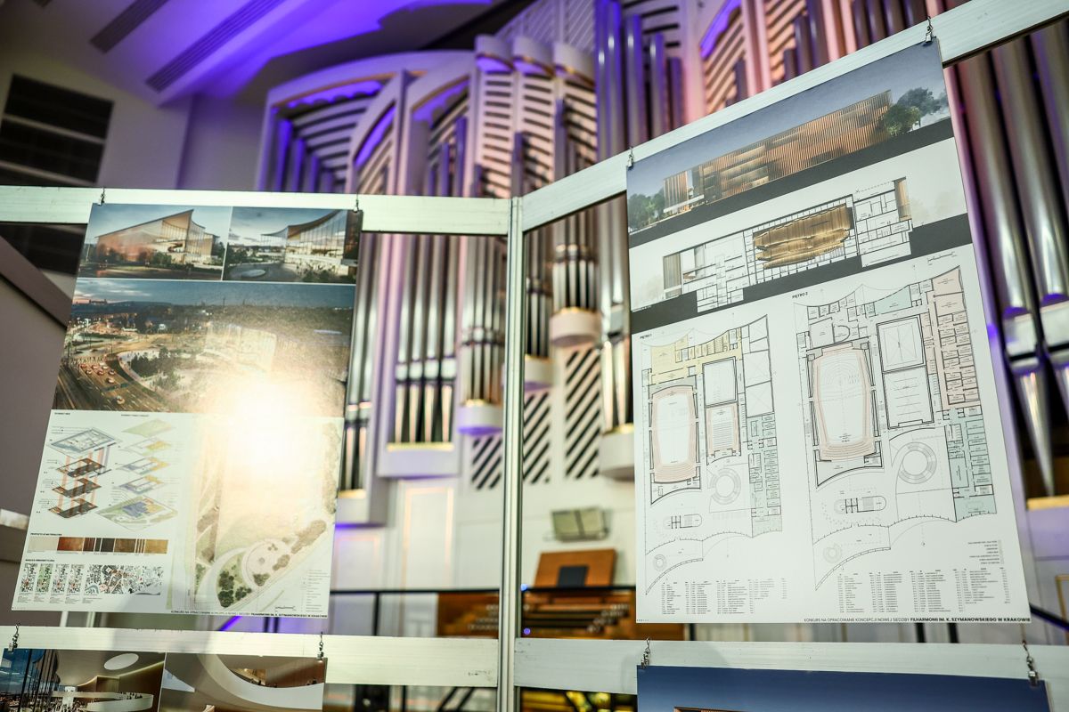 Zwycięskie biuro architektoniczne K. Ingarden, J. Ewy Architekci z Krakowa zaprojektowało budynek, w którym główna sala koncertowa pomieści około 1900 słuchaczy. Jury doceniło przede wszystkim rozwiązania akustyczne. Projekt przewiduje dwa poziomy balkonów, a między nimi rozciągają się szerokie powierzchnie ścian, które pomagają dźwiękowi swobodnie wybrzmiewać. Balkony na najwyższym poziomie są lekko odsunięte od ścian bocznych i delikatnie opadają w stronę sceny, co poprawia widoczność z każdego miejsca na widowni.
