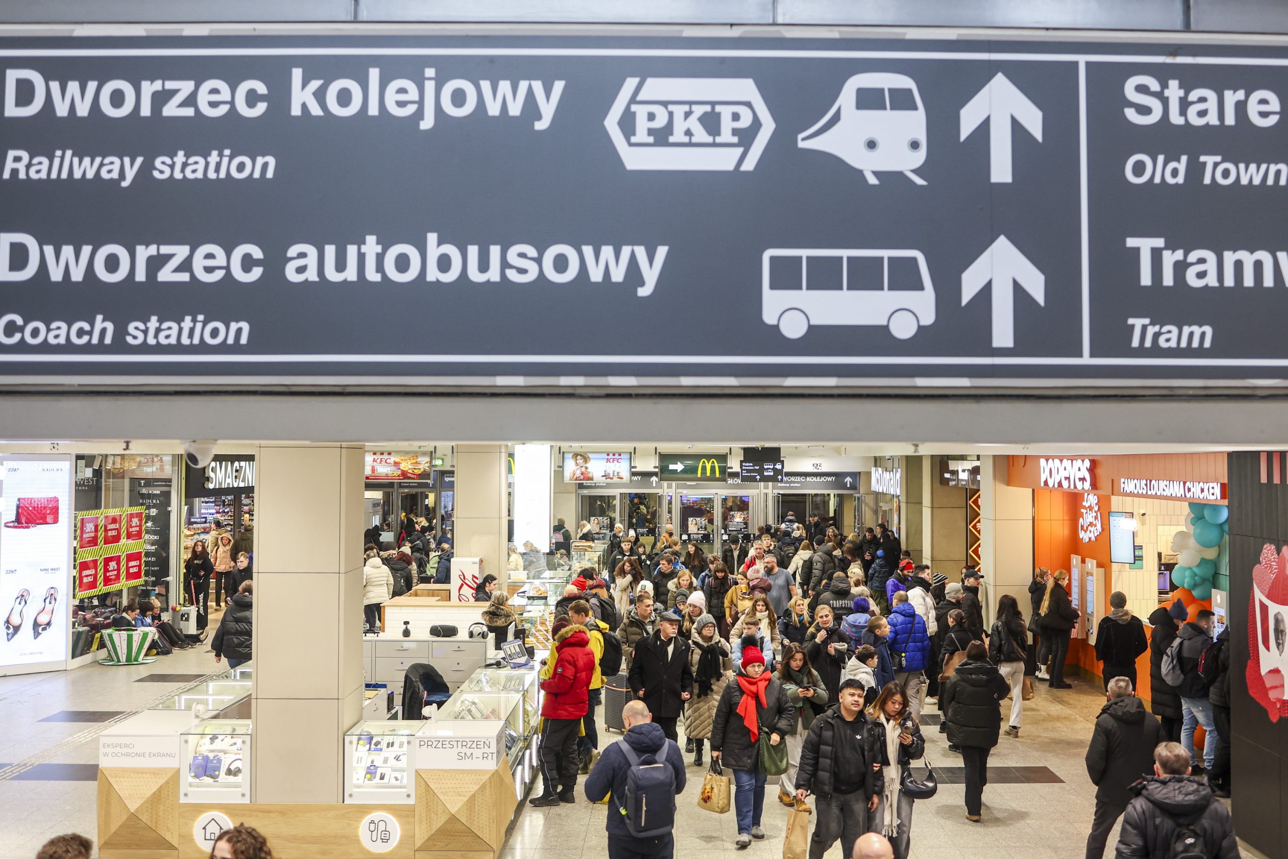 Na Dworcu Głównym w Krakowie od popołudnia jest tłoczno. Krakowianie i turyści wyjeżdżają, żeby spędzić Sylwestra poza miastem, a część osób dopiero teraz dojeżdża na wieczorne imprezy w stolicy Małopolski.