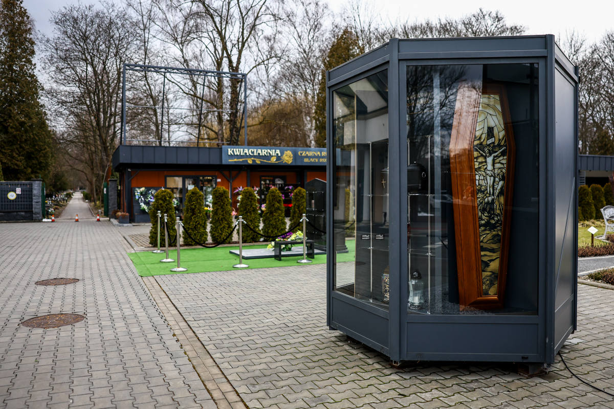 Przy Cmentarzu Rakowickim uwagę przechodniów znów przyciąga obracająca się wystawa z trumnami. Mieszkańcy żartują, że to trumnomat, a my zapytaliśmy krakowian, czy taka forma reklamy nie jest przesadą.