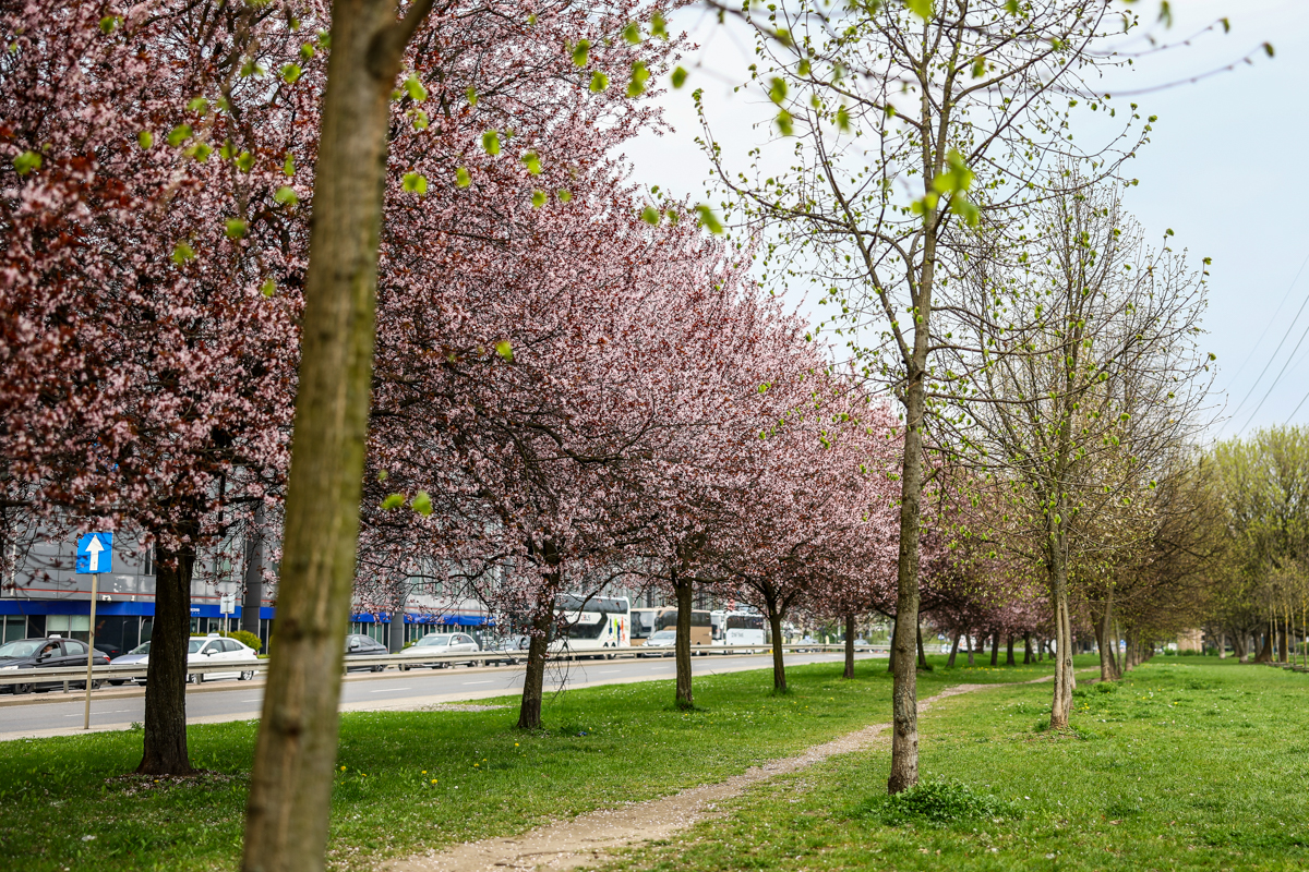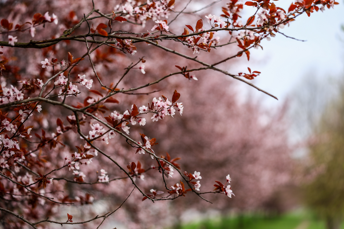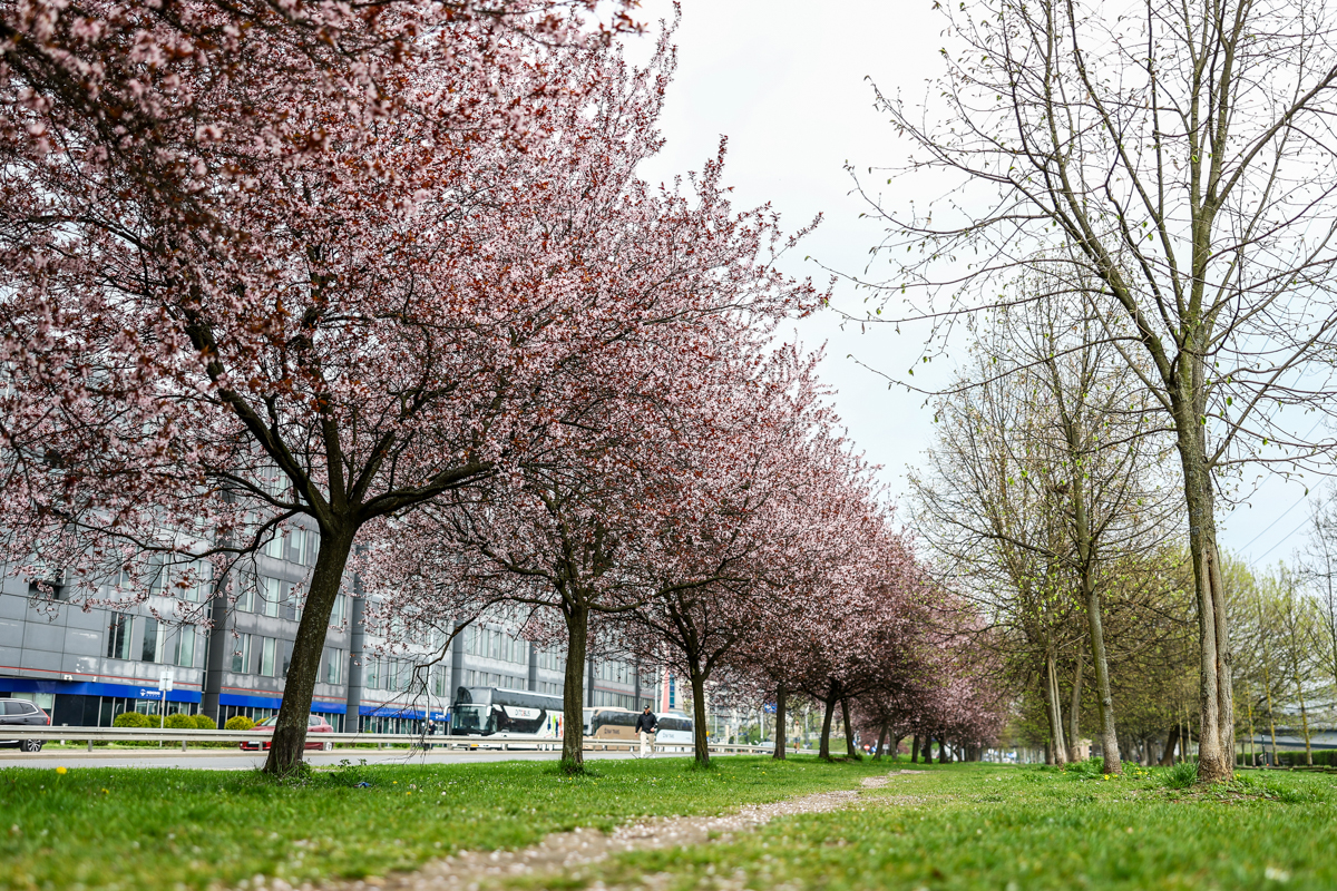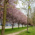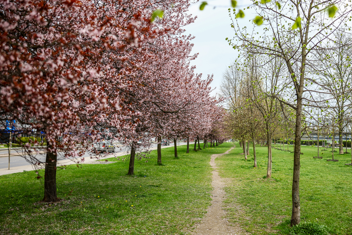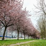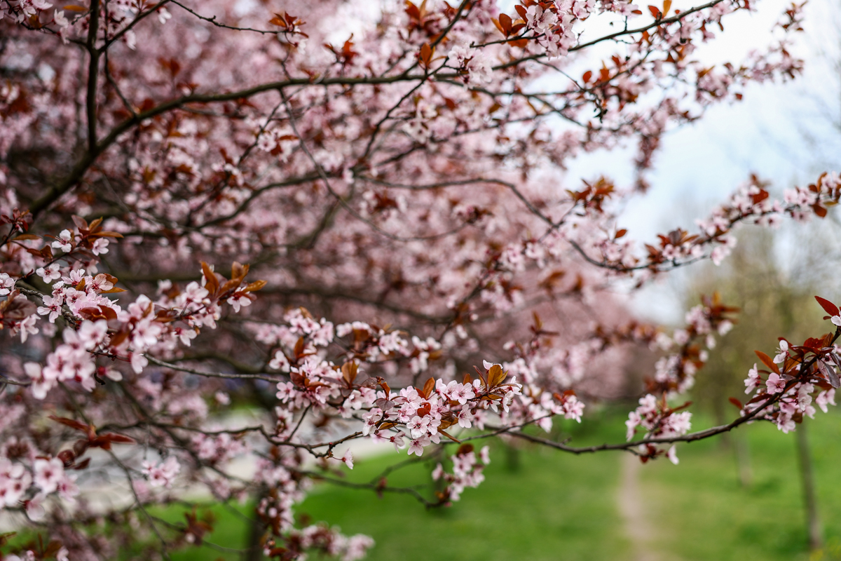 Różowe kwiaty przy Mangdze przyciągają spacerowiczów i fotografów, a ich kwitnienie co roku przypomina o japońskim rodowodzie tych drzew.