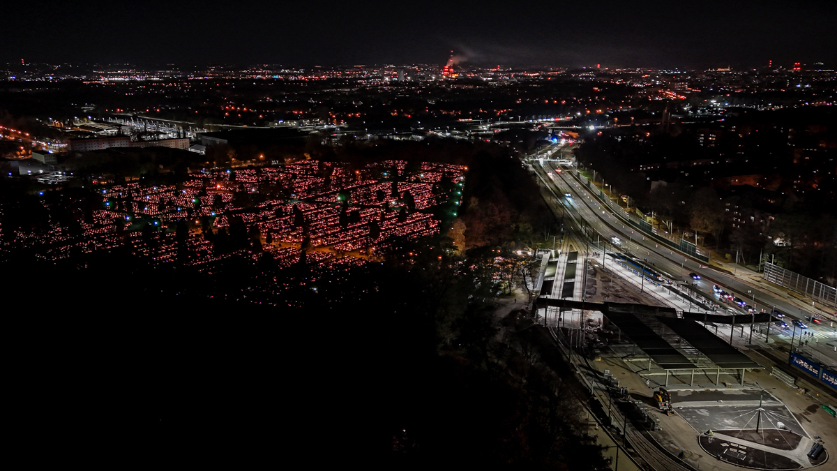 1 listopada to szczególny dzień – cały Cmentarz Grębałów tonął w świetle. Setki, a może tysiące płomyków zapalonych w intencji bliskich, którzy odeszli. Z drona widać było, jak każdy grób rozświetlony jest ciepłym blaskiem znicza.