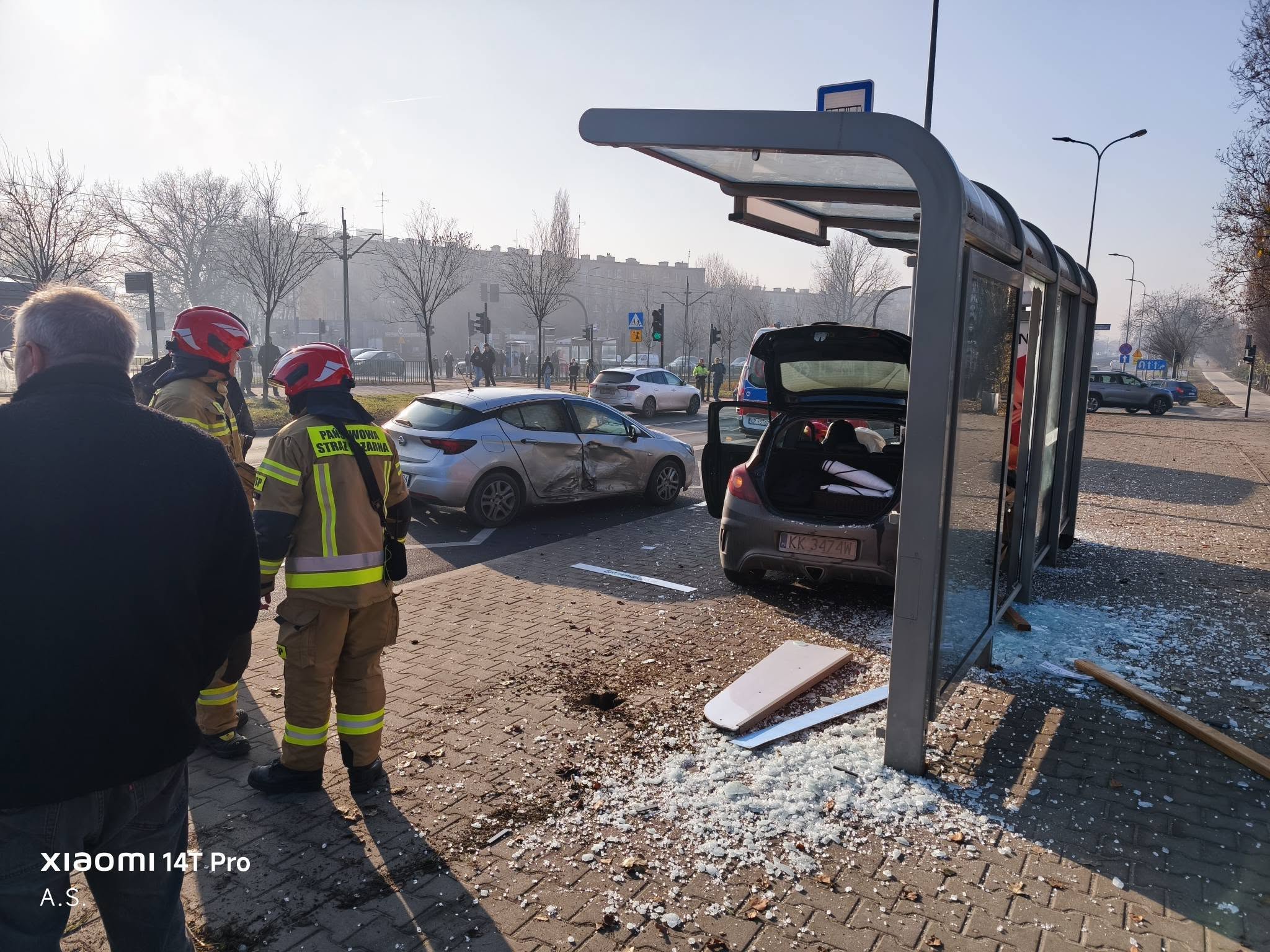 Do groźnego wypadku doszło w piątek przed południem na alej Pokoju. Dwa samochody osobowe zderzyły się w rejonie przystanku autobusowego. Jeden z pojazdów zjechał z jezdni i wjechał wprost w wiatę.