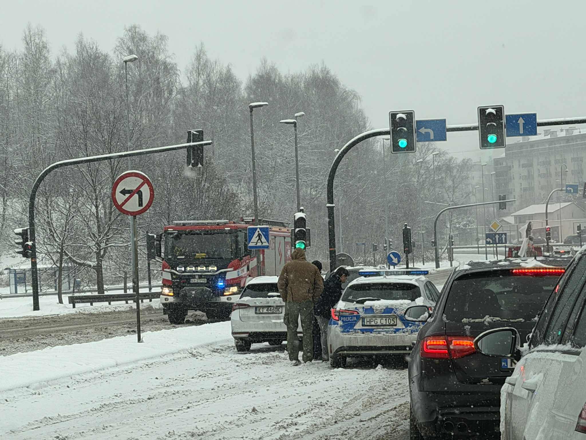 Warunki na drogach są trudne – w Krakowie pada śnieg, jezdnie są śliskie, a rozjeżdżony śnieg łatwo zamienia się w gołoledź. Kierowcy powinni zachować szczególną ostrożność w rejonie ul. Herberta i liczyć się z utrudnieniami oraz możliwymi opóźnieniami.
