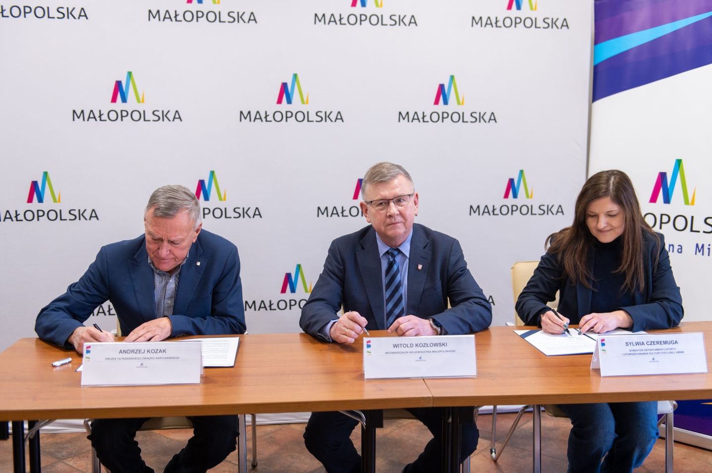Umowę ze strony województwa podpisali wicemarszałek Witold Kozłowski oraz dyrektor Departamentu Sportu i Upowszechniania Kultury Fizycznej Sylwia Czeremuga. Tatrzański Związek Narciarski reprezentowali prezes Andrzej Kozak i wiceprezes Wojciech Gumny.
