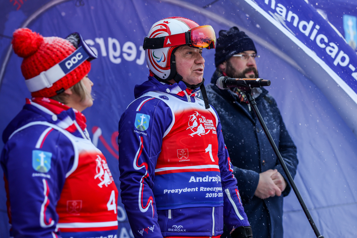 Andrzej Duda wrócił na narty. Były prezydent wziął udział w zawodach charytatywnych organizowanych przez fundację Handicap na Polanie Szymoszkowej w Zakopanem.