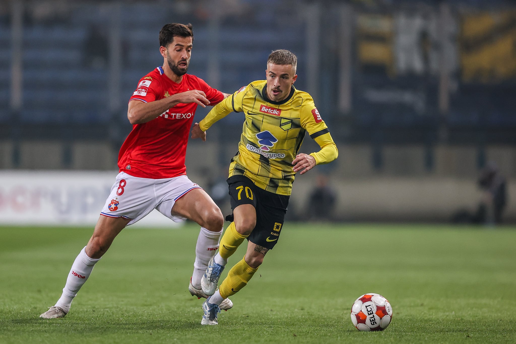 Mecz rozpoczął się od mocnego naporu Wisły Kraków. Angel Rodado już w pierwszych minutach miał trzy okazje – najpierw znajdował się na spalonym, później został zablokowany przez Michała Pazdana, a trzeci strzał odbił się od obrońcy. Również Kacper Duda testował bramkarza Antoniego Mikułkę, ale młody golkiper Wieczystej był nie do pokonania.