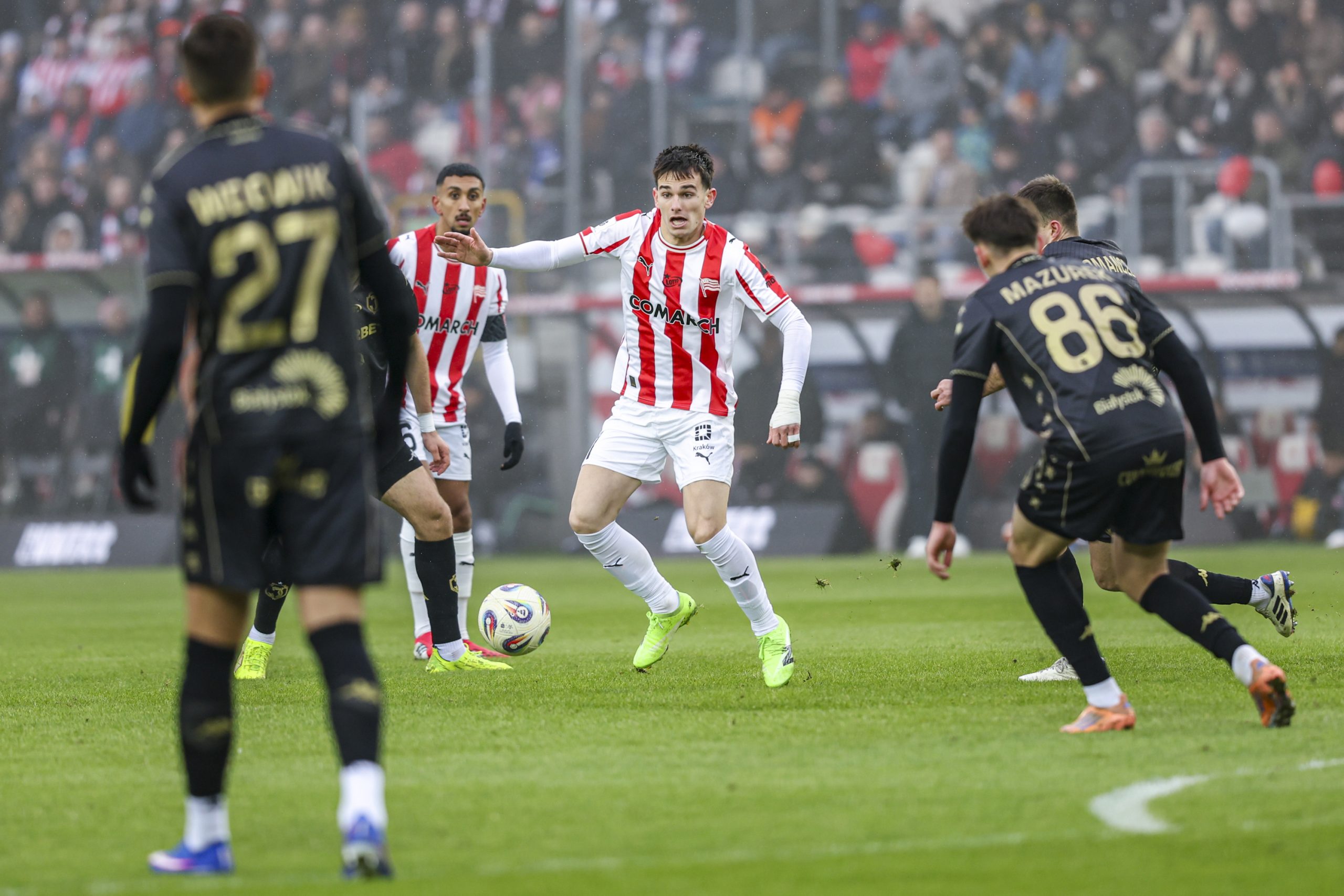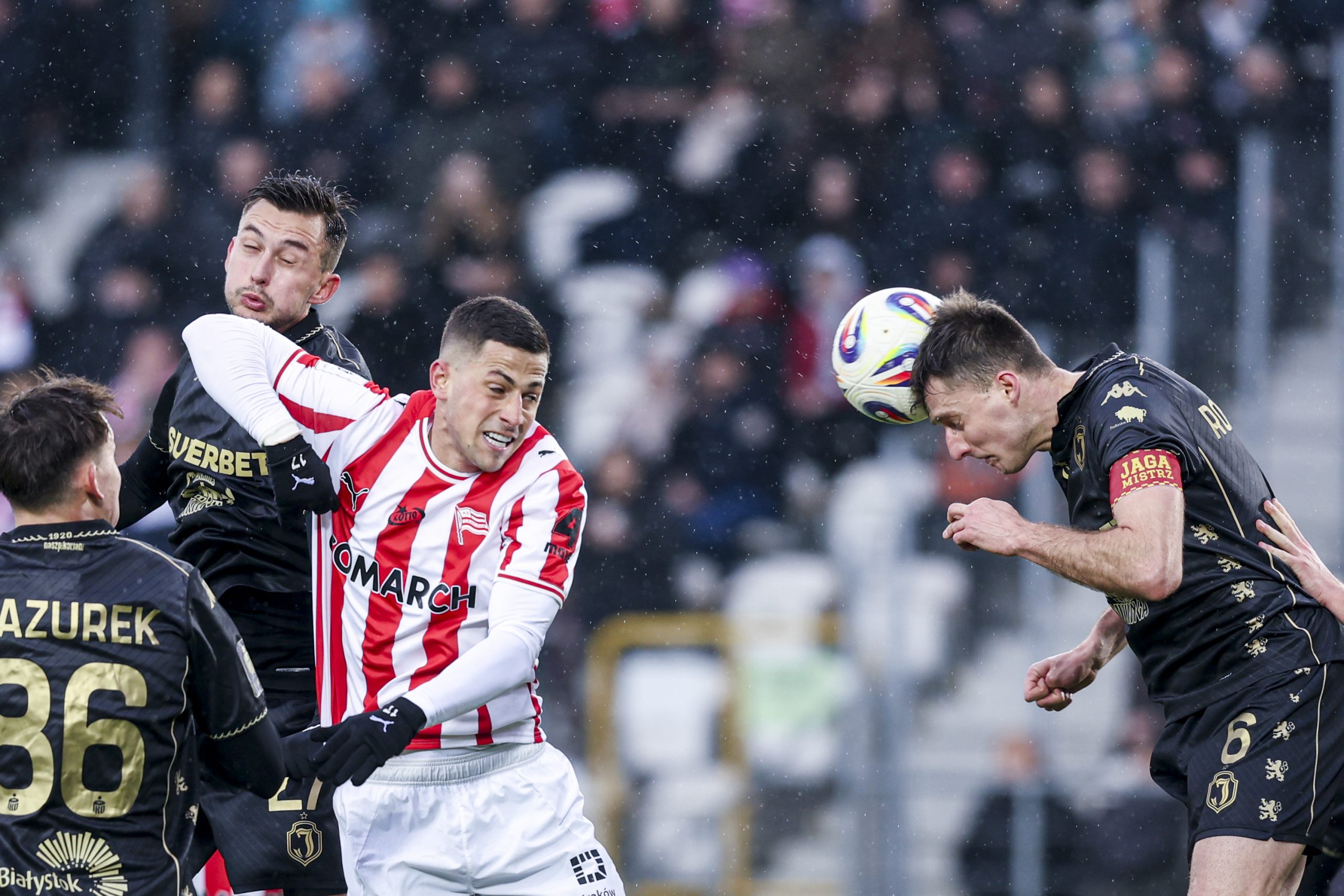 W 13. minucie białostoczanie przeprowadzili groźny atak. Afimico Pululu znalazł się pięć metrów przed bramką i natychmiast uderzył. Sebastian Madejski kapitalnie interweniował i uratował Cracovię przed stratą gola.