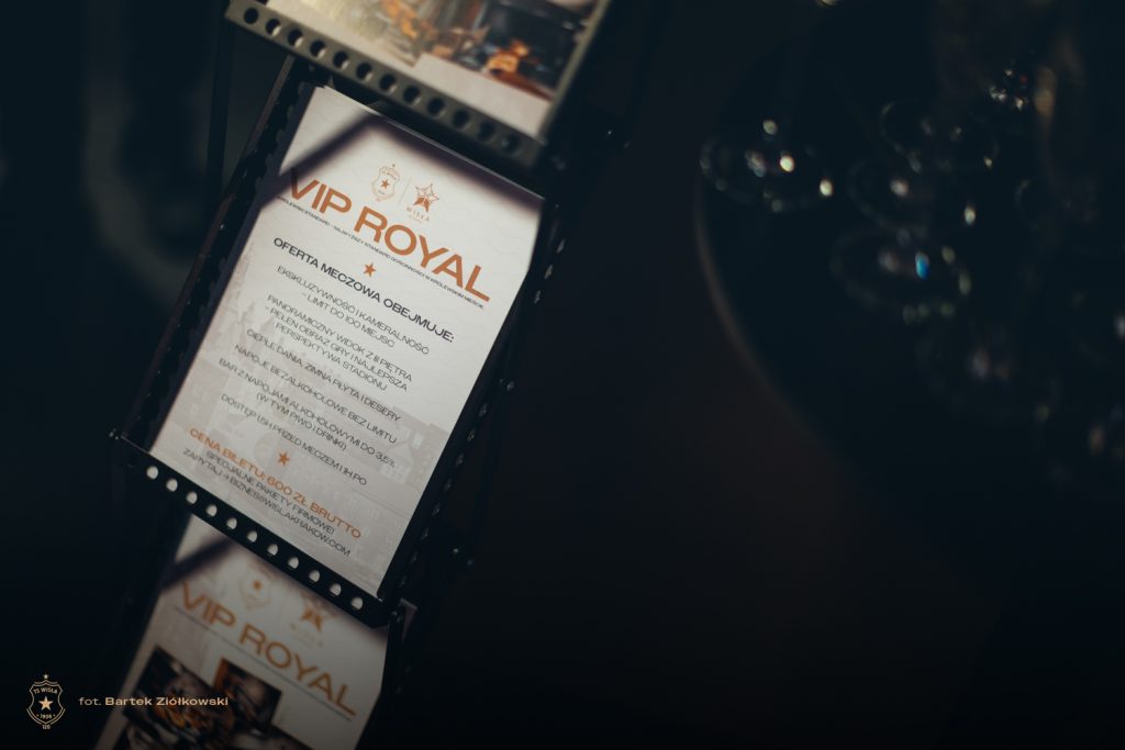 Nowa loża mieści się na III piętrze stadionu (trybuny zachodniej) – na poziomie, na którym dotychczas nie funkcjonowała przestrzeń premium. To unikalna lokalizacja, zapewniająca doskonały widok na boisko oraz pełen ogląd wydarzeń sportowych. VIP Royal to idealne miejsce dla osób poszukujących komfortowych warunków do przeżywania piłkarskich emocji, a jednocześnie ceniących kameralną atmosferę.