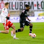 Gospodarze mieli świetną okazję w 31 minucie. Mateusz Lewandowski po błędzie Juliana Lelievelda strzelał głową z dobrej pozycji, ale piłka przeleciała obok słupka.
