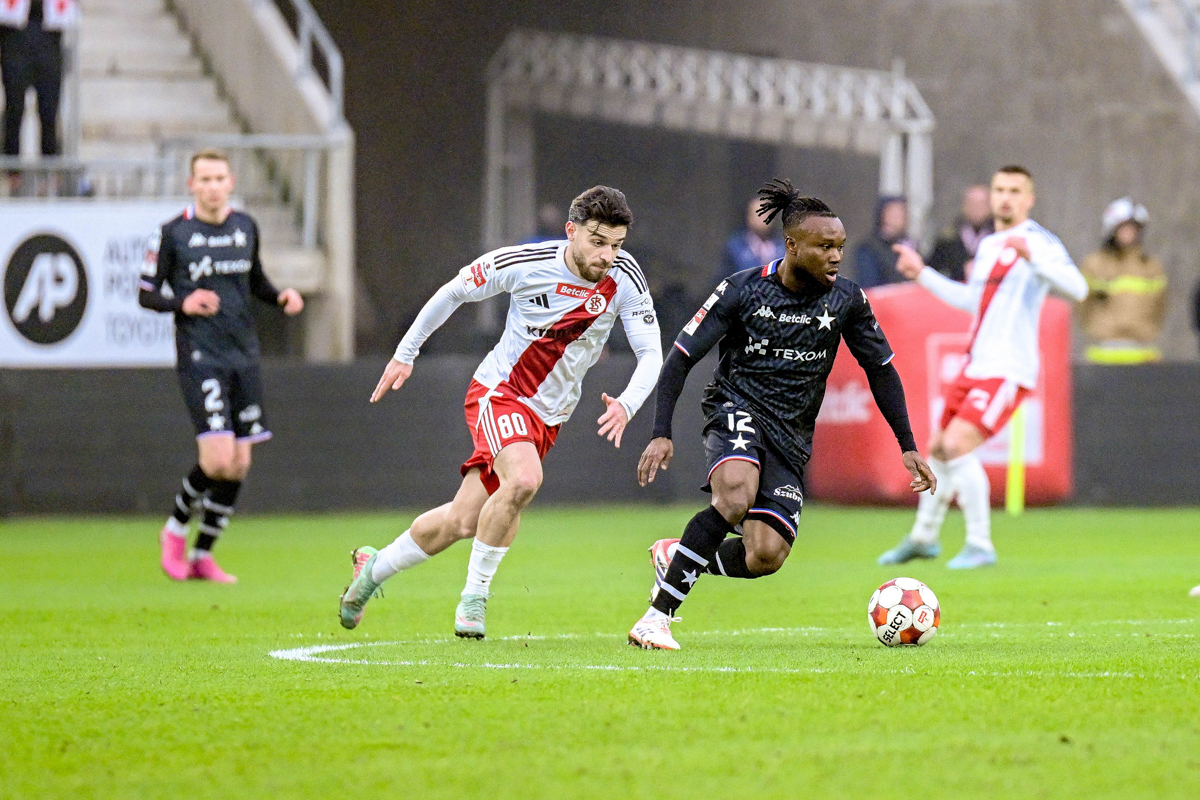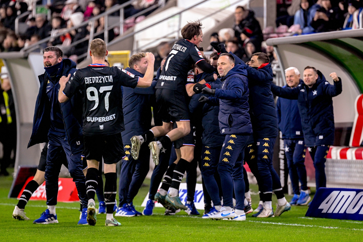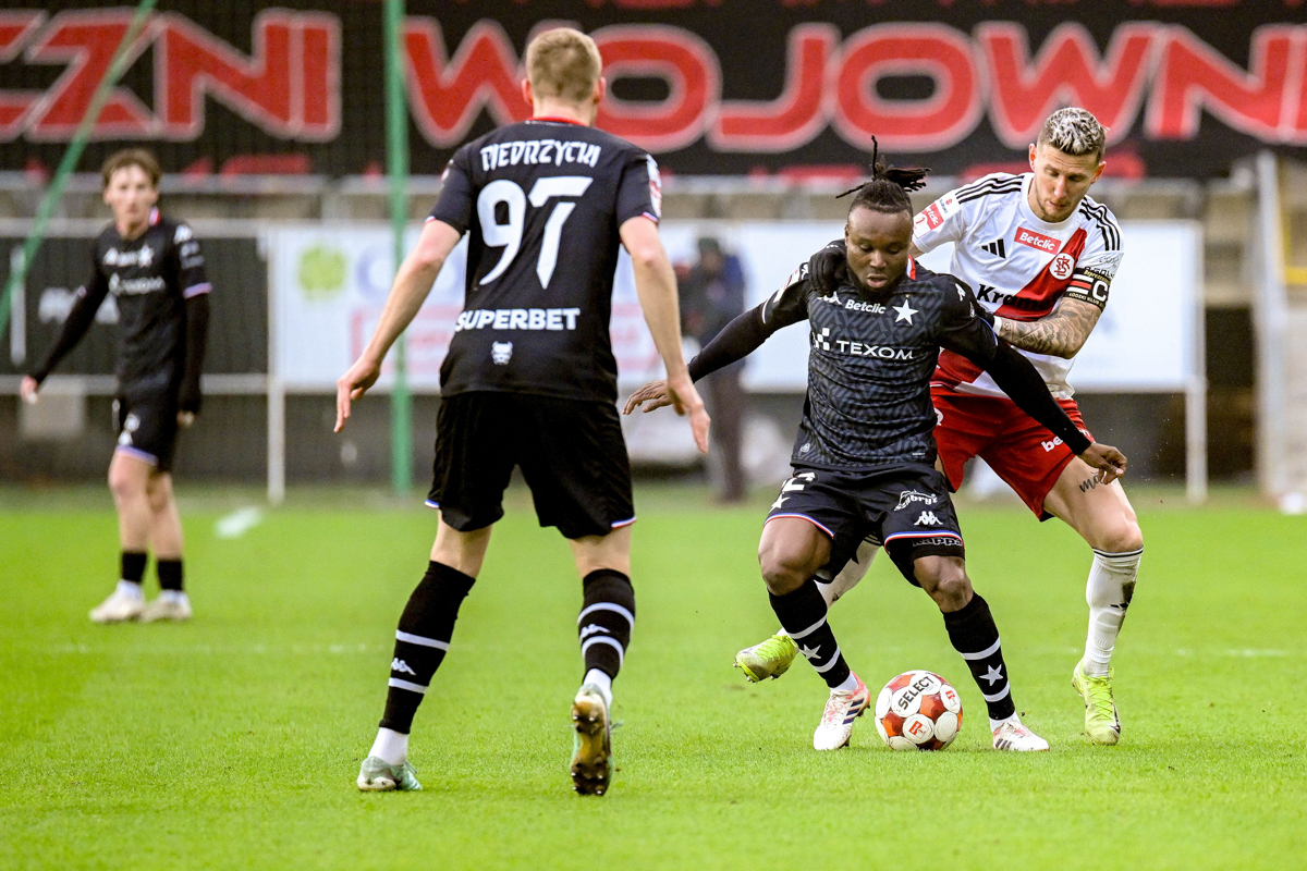Gospodarze mieli świetną okazję w 31 minucie. Mateusz Lewandowski po błędzie Juliana Lelievelda strzelał głową z dobrej pozycji, ale piłka przeleciała obok słupka.